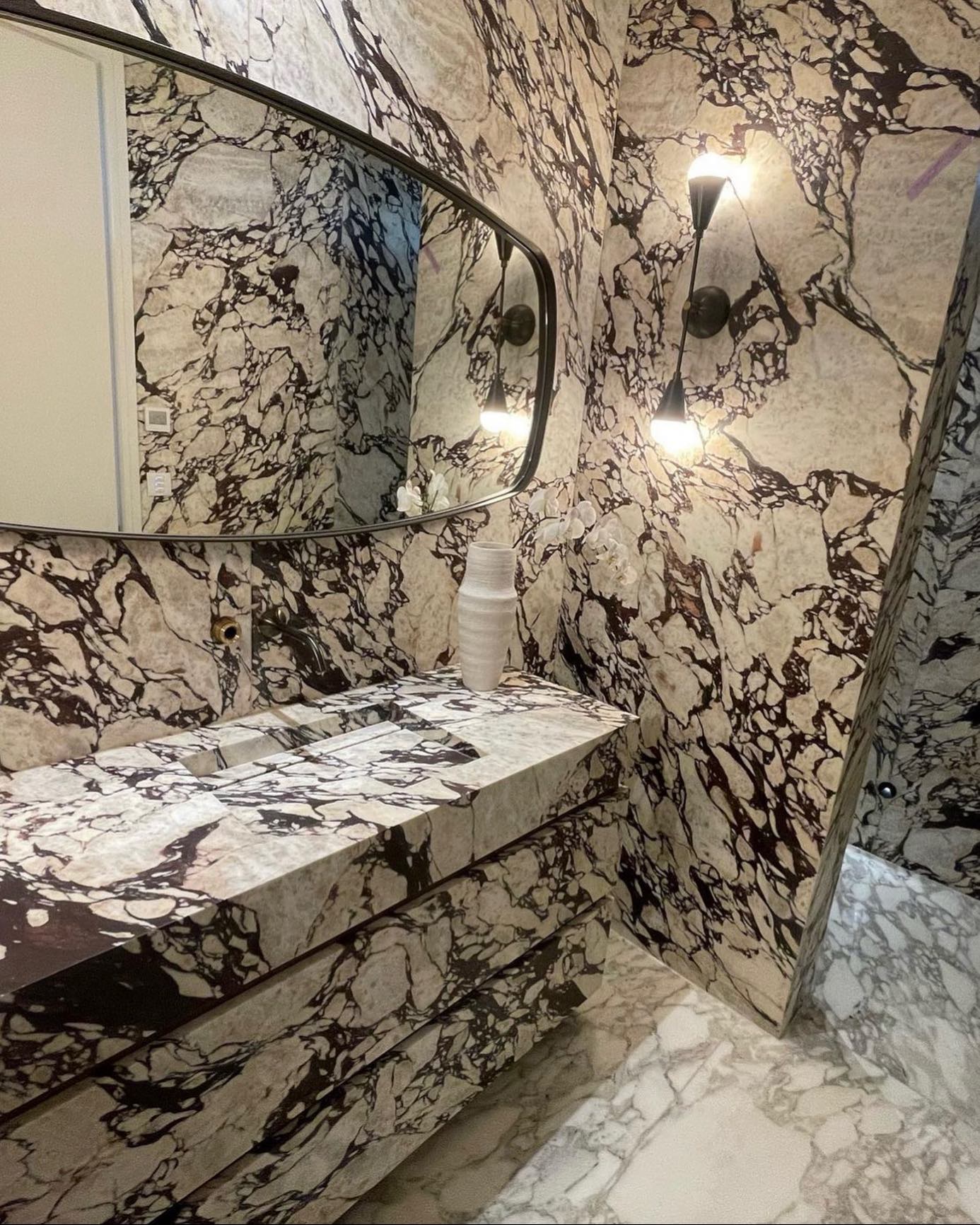 - Le marbre violet, avec son motif de veines de couleur mauve se dispersant sur un fond blanc et des nuances de jaune disséminées, offre des résultats décoratifs très plaisants.