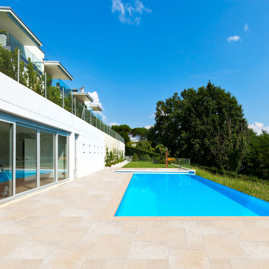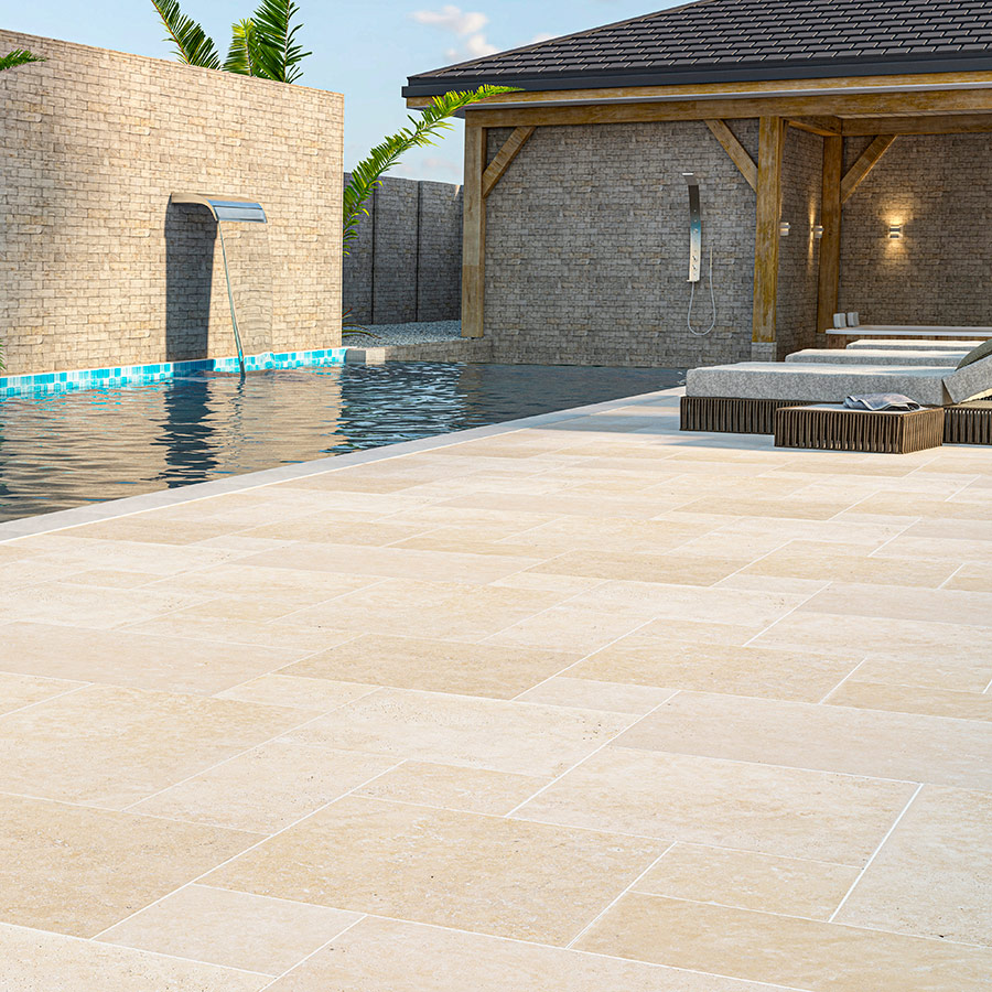 - La finition unique des pavés en travertin apporte une touche sophistiquée à tout espace extérieur.