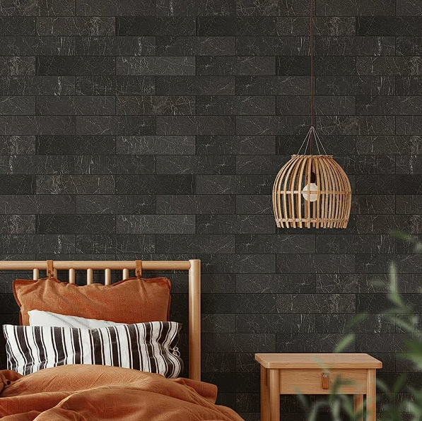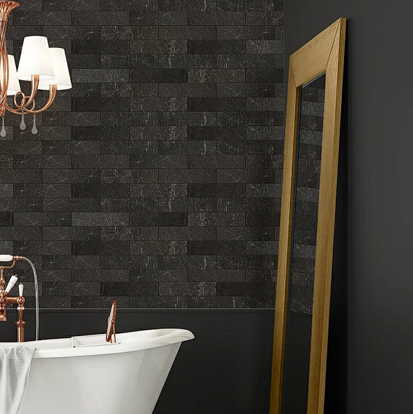 - Les carreaux de revêtement en marbre sombre sablé, à la texture élégante apporte du caractère à n’importe quel espace.